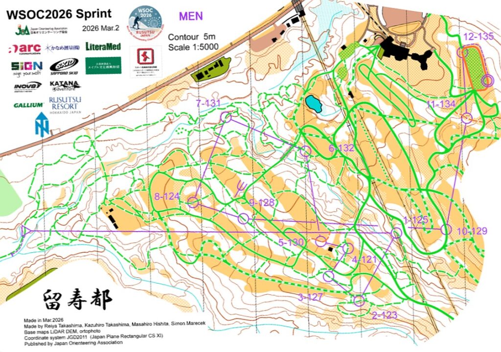 Mistrovství světa v japonském středisku Rusutsu začalo mapově zajímavým sprintem, kde bylo potřeba dobře přečíst překážky v podobě údolí s potoky a podle toho zvolit správnou volbu postupu. Závodníky překvapil velmi dlouhý postup na jedničku, až teprve poté následovaly krátké rychlé úseky v síti čárkovaných stop mezi standartními rolbovými tratěmi.